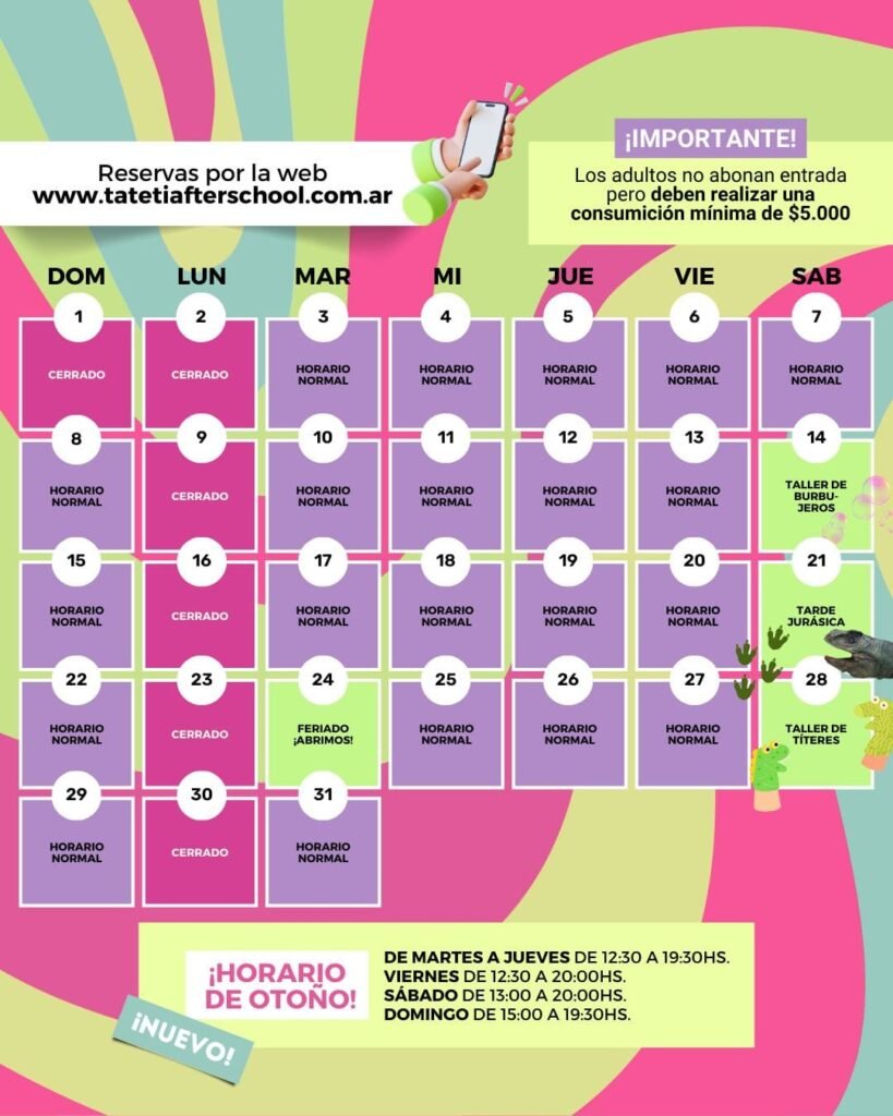 Este mes preparamos experiencias únicas para que disfrutes en familia. Reservá tu lugar y asegúrate una jornada llena de diversión, juegos y sorpresas.