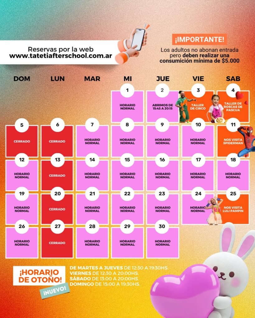 🌟Eventos Especiales de ABRIL en Tateti After School 🎉